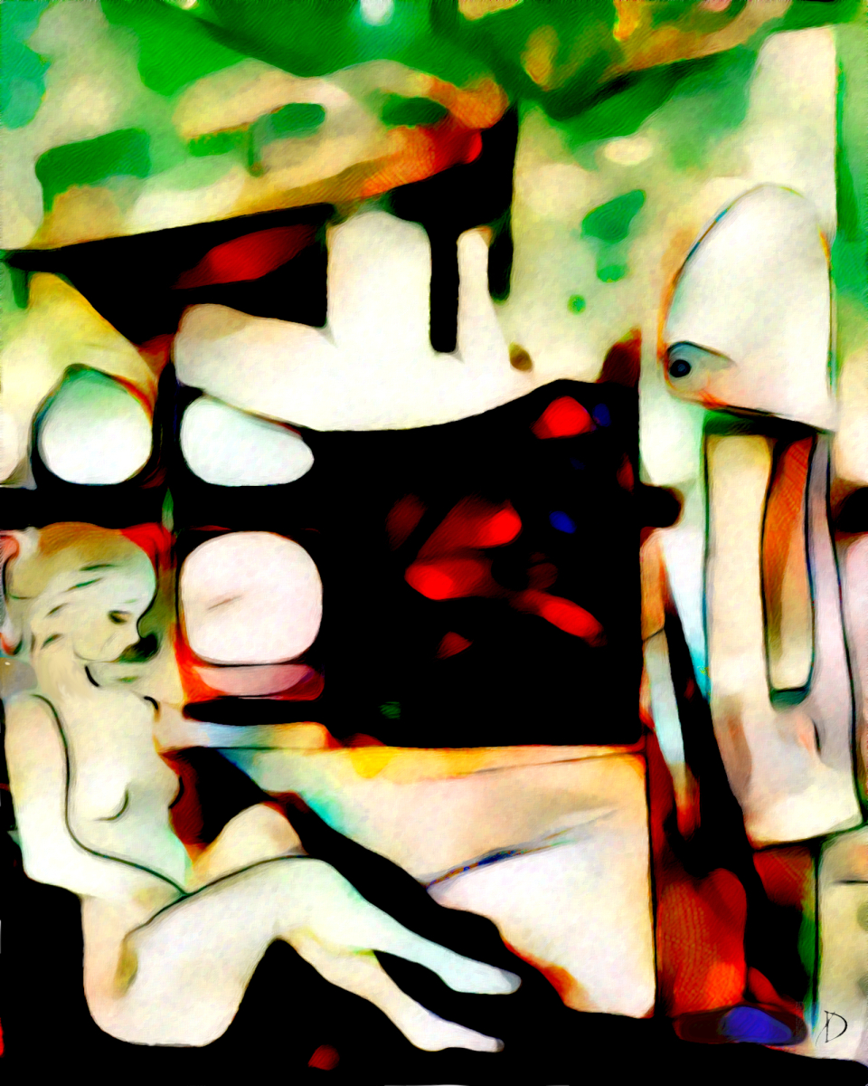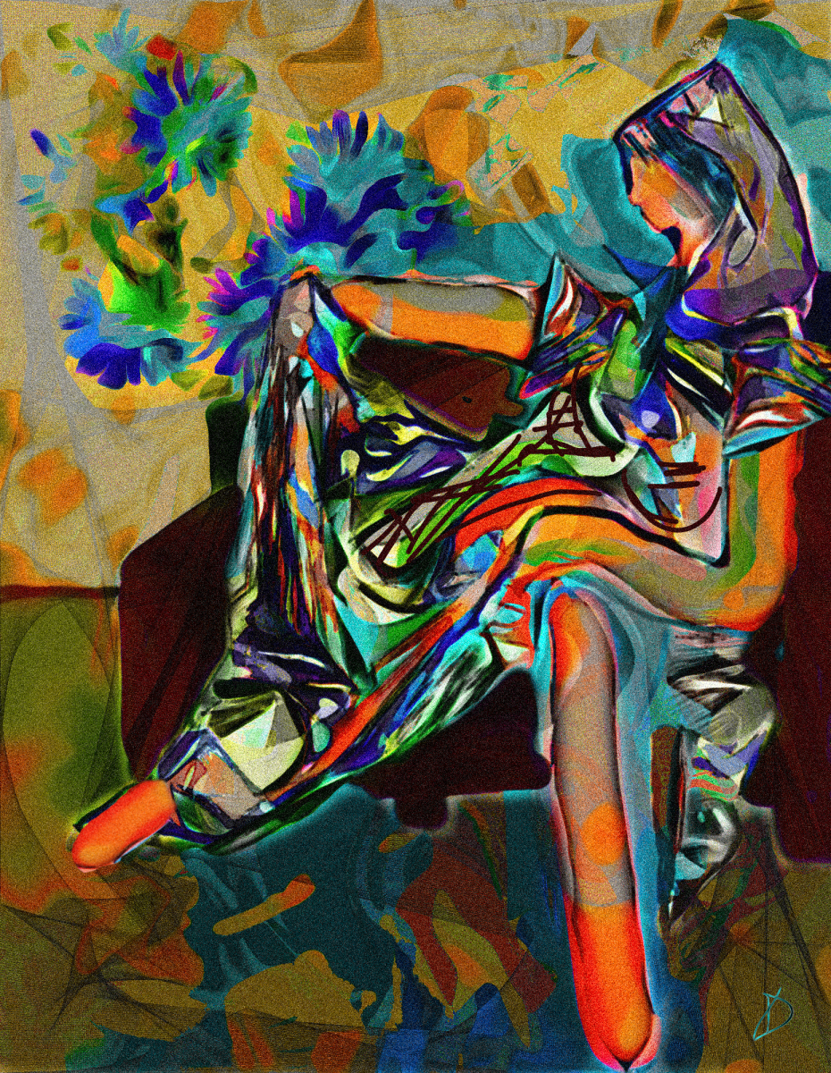 * Figurative & Portraits: These works (such as Moirai or Woman-in-Hat) often feel haunting or psychological. He uses digital “distortion” to strip away literal realism in favor of a more symbolic or atmospheric representation.