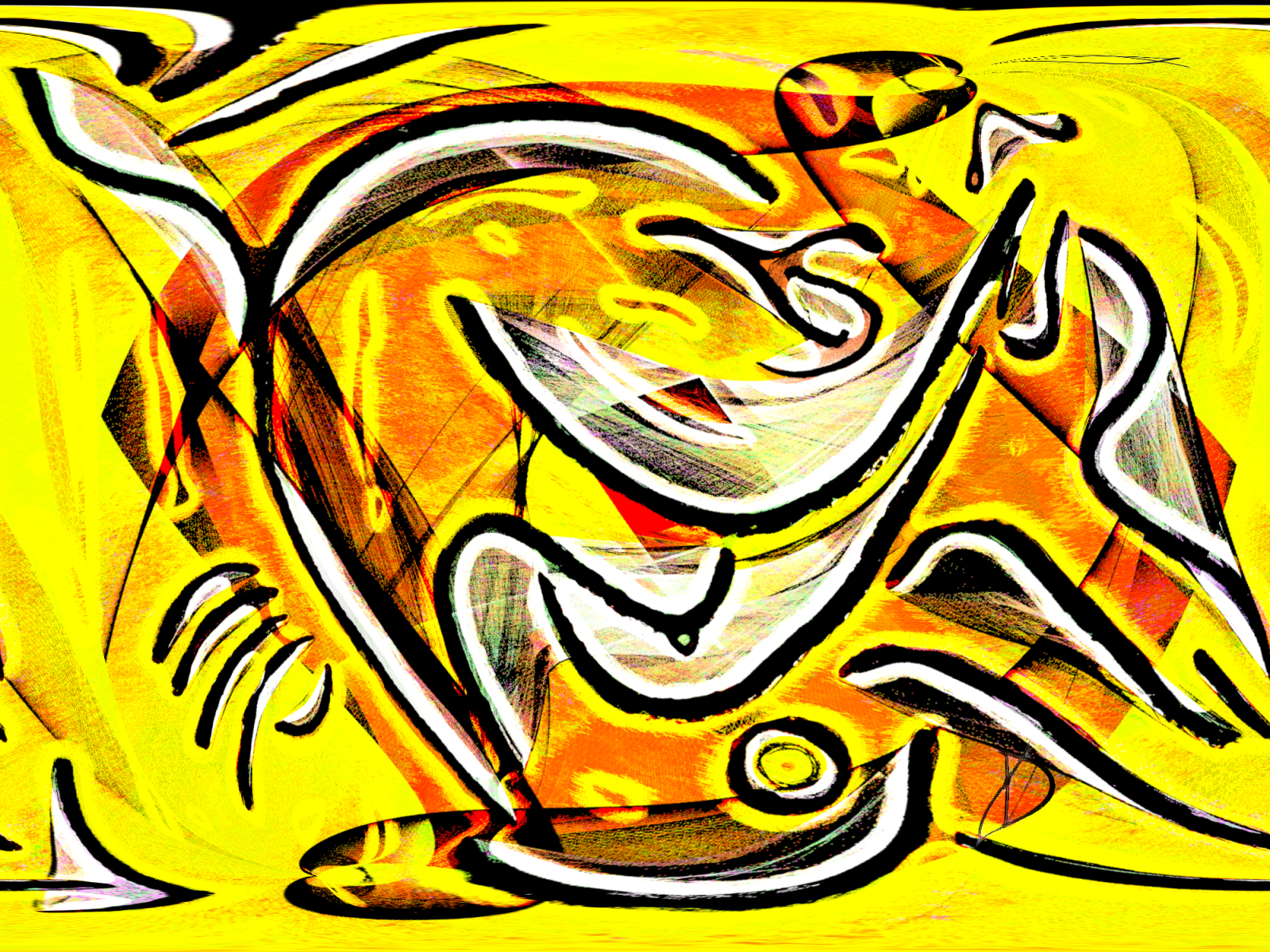 * Gestural Marks: His work often features bold, sweeping strokes that mimic physical brushes, giving the digital medium a sense of movement and “hand-made” energy.