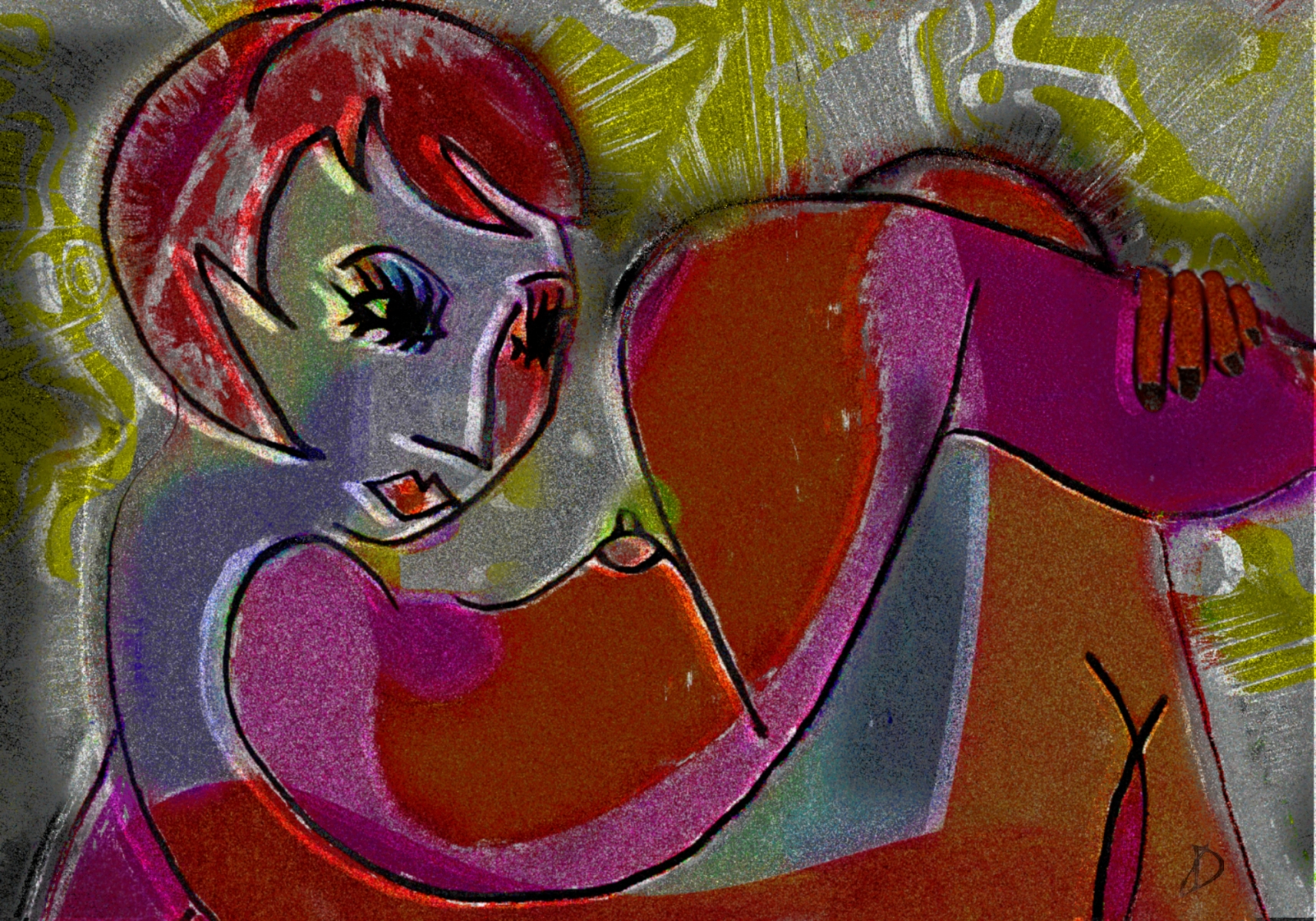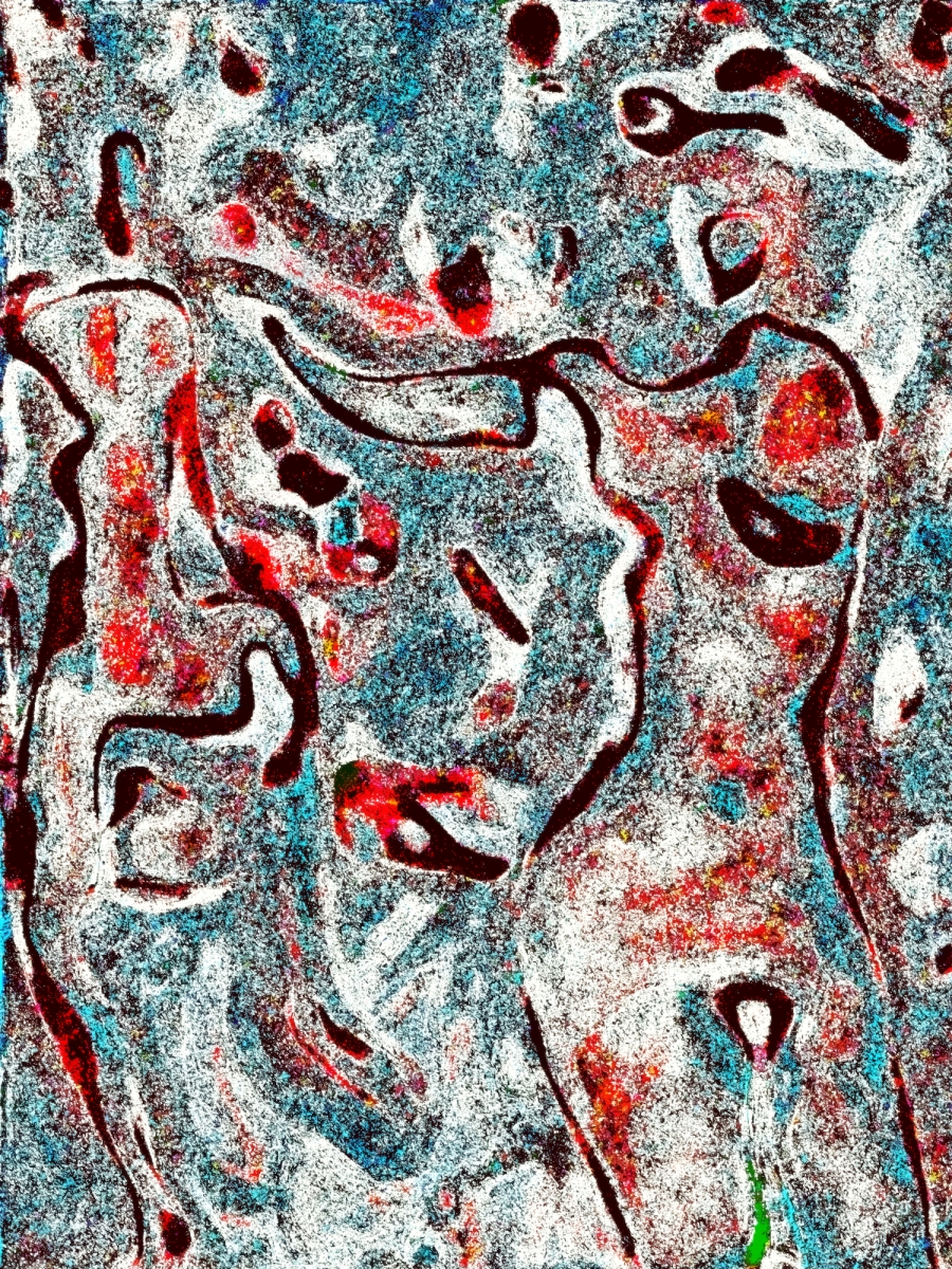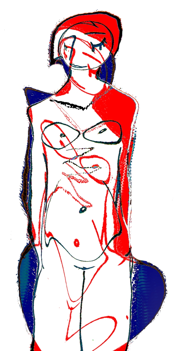nude in blue and orange